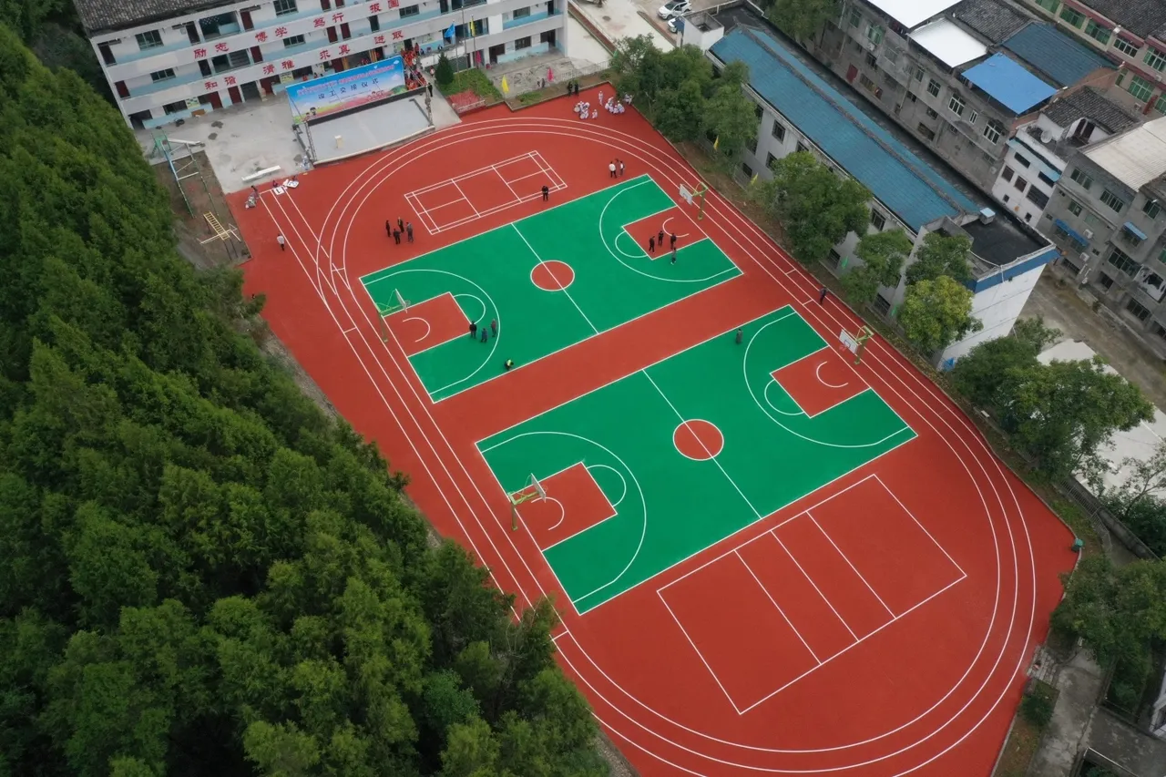 A bright red, IAAF-certified EPDM running track — soft underfoot, non-slip, and built to endure Sichuan’s humid summers and rainy seasons. Donated by MOUNTSHIP™, the project included 7 tons of premium polyurethane binder and EPDM granules, jointly implemented with local partners to create a safe, joyful space for over 300 left-behind children.